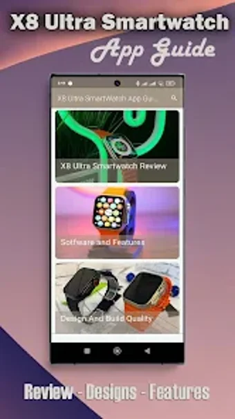 X8 Ultra SmartWatch Uygulama Rehberi, X8 Ultra akıllı saat hakkında kapsamlı bilgiler sunan bir mobil uygulamadır. Bu uygulama, kullanıcılara saatin özelliklerini, tasarımını ve yazılımını detaylı bir şekilde açıklamakta ve X8 Ultra'nın sunduğu sağlık ve fitness işlevleri gibi özellikler hakkında bilgi vermektedir. Ayrıca, kullanıcıların akıllı saati en verimli şekilde kullanabilmeleri için ürün incelemeleri ve kullanıcı yorumları da dahil edilmiştir.